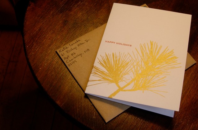 In keeping with my 2008 snail mail kick, this is the first year I’ve sent out holiday cards. Nothing fancy: no photos, no witty recap of the year, basically just another chance to connect with people I care about but only rarely get to see. Aunts and uncles, former teachers, my sole remaining friend from the golfing years — who texted me last night to say the card brought him to tears. Even though the snowy season doesn’t particularly jazz me up, it’s a good time to sit indoors with a cup of tea and write to people I love.