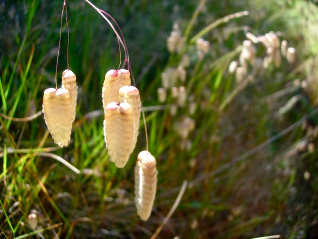 The passage of time reflected in this gorgeous, morphing, splendidly named “Great Quaking Grass” (Briza maxima) takes on new meaning in light of the poems carved in Chinese calligraphy into the detention barracks’ redwood walls.