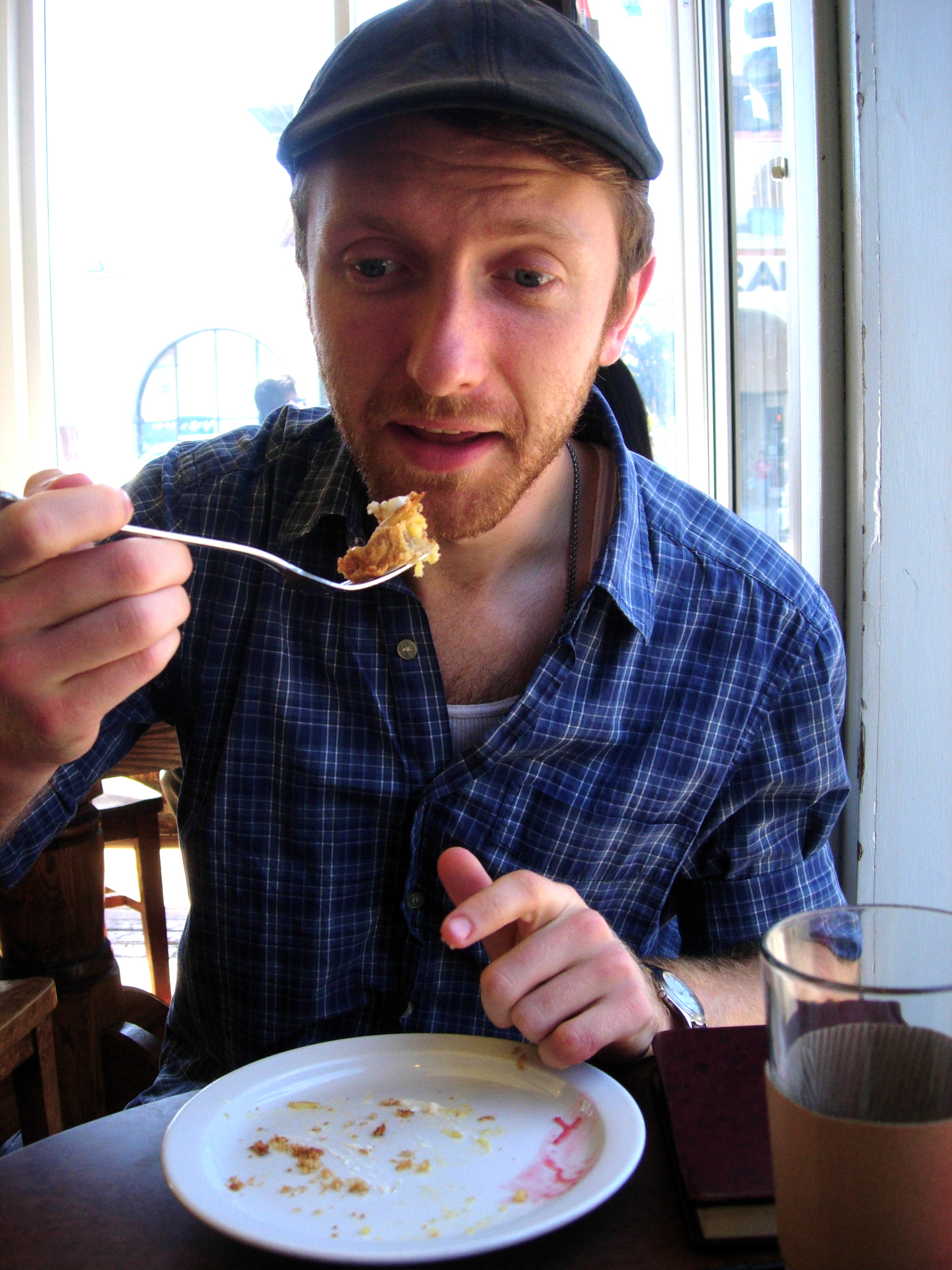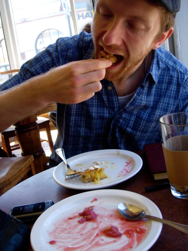 Mission Pie is the best kind of pie shop. A bright, airy café at 25th and Mission, filled with sweets and savories, operating on all kinds of good-for-the-community-and-environment bases. Ryan and I met there yesterday to do some work: I was editing a video blog, and 18 hours later it’s still not finished but we got a sweet little photo story out of the deal. I didn’t notice until uploading the pictures that they’re all in primary colors. A fine, bright afternoon. And who can resist that smile, huh?