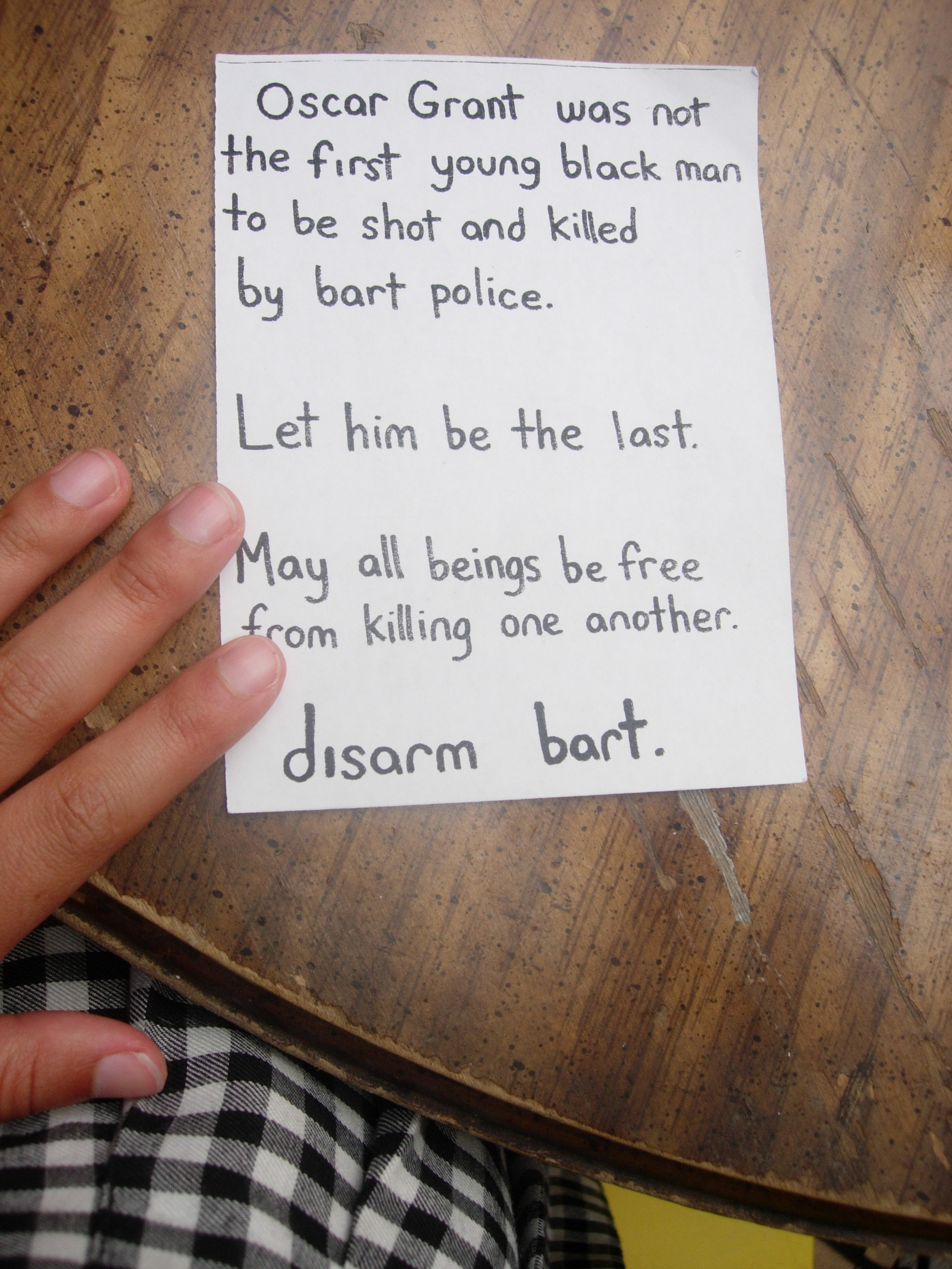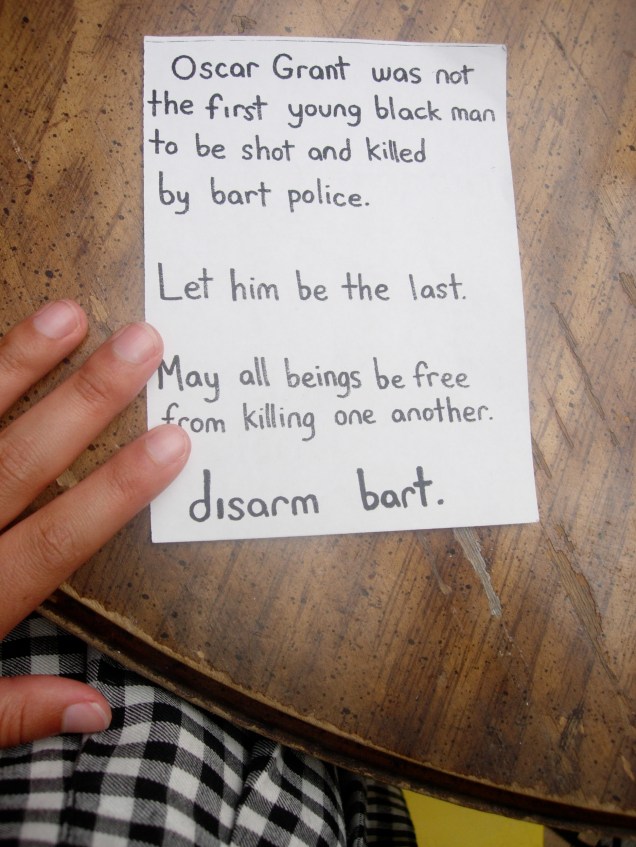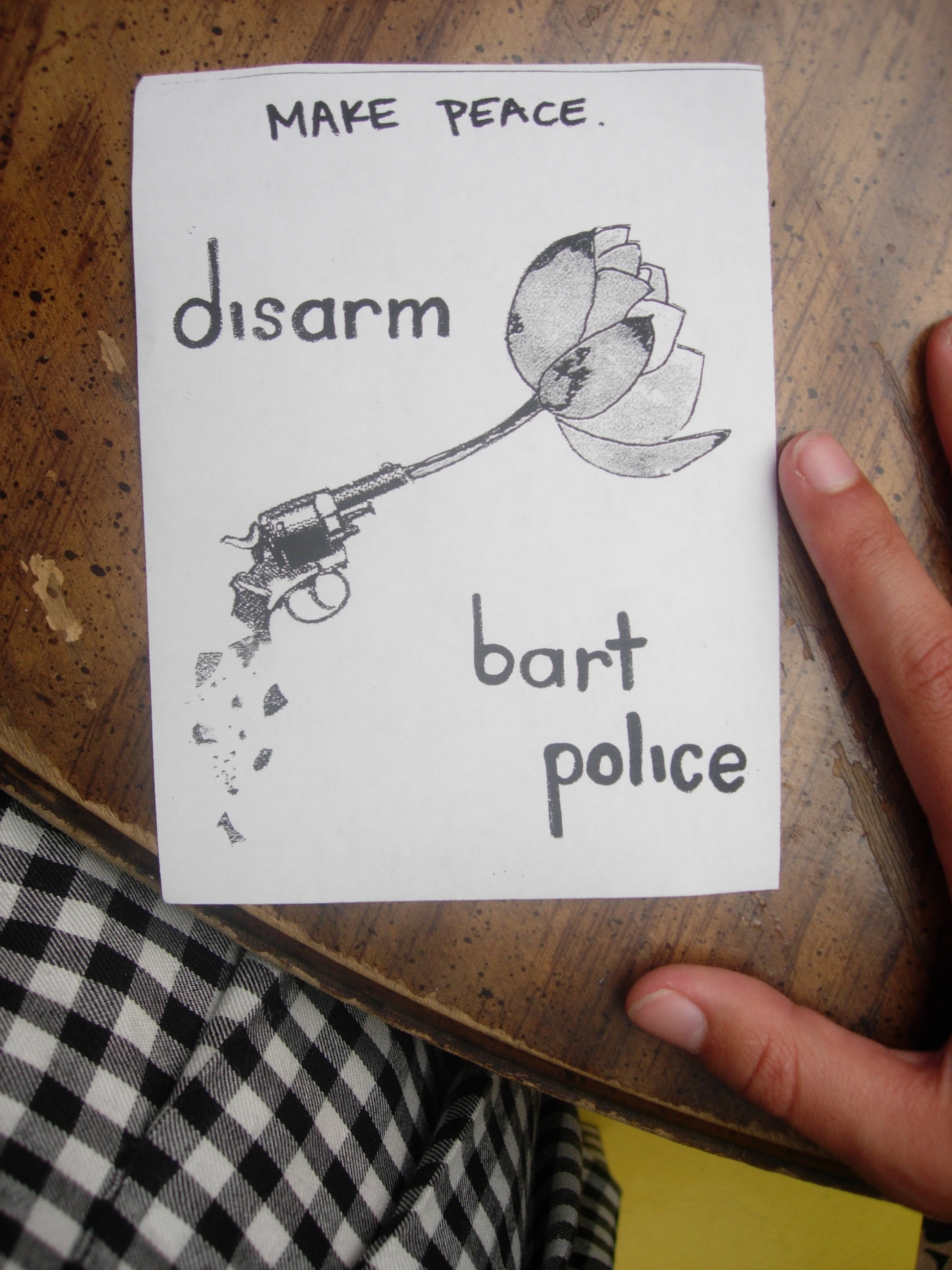 Last night on my way home from Oakland to SF, I boarded the bart train with no intention of handing out any flyers. It was late; I was tired; also feeling a little shy.