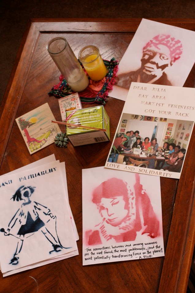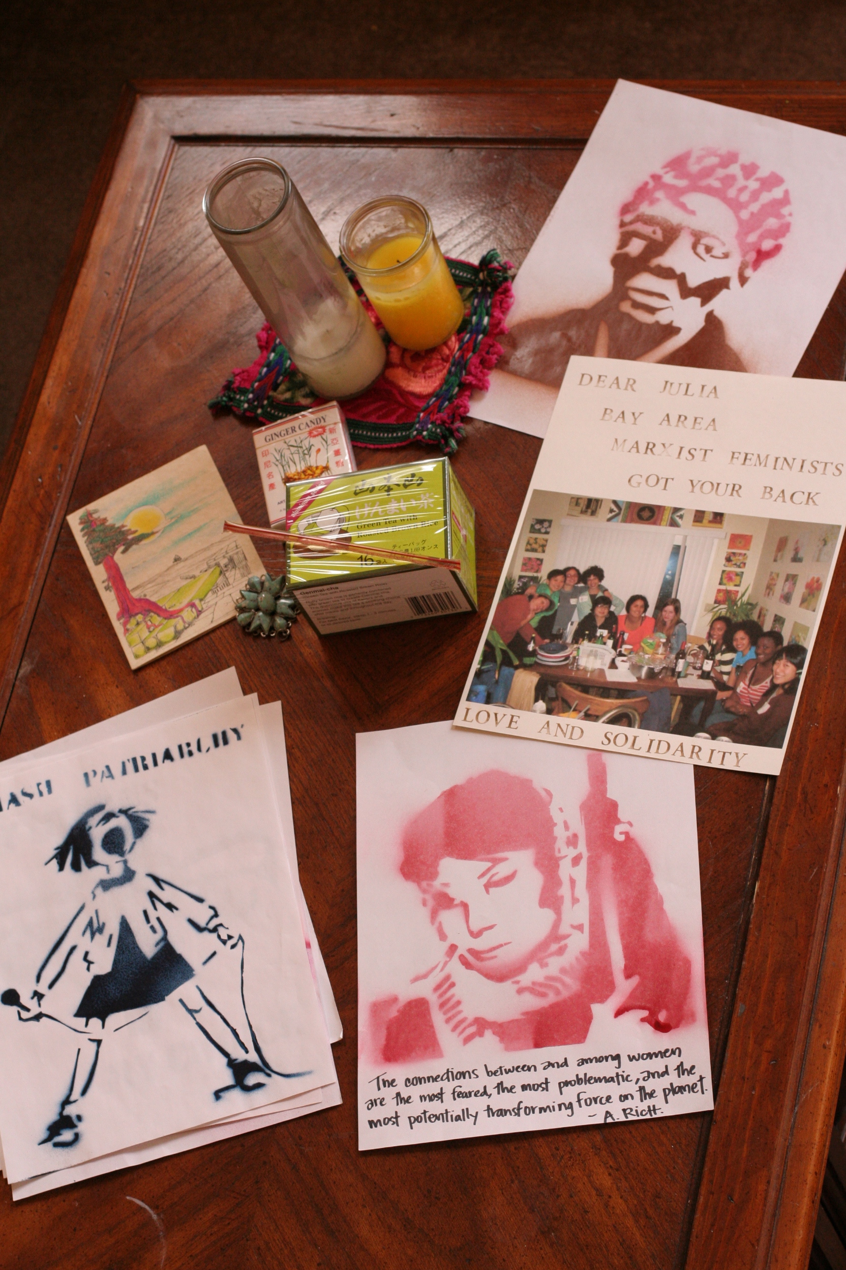 Last week, our Marxist Feminist study group assembled some offerings for a care package. A comrade of ours in LA (close friend to some, known through her work to others) has been going through a difficult time lately, and we wanted to send a small token of appreciation for her strength, amazing organizing work, and general fabulousness.