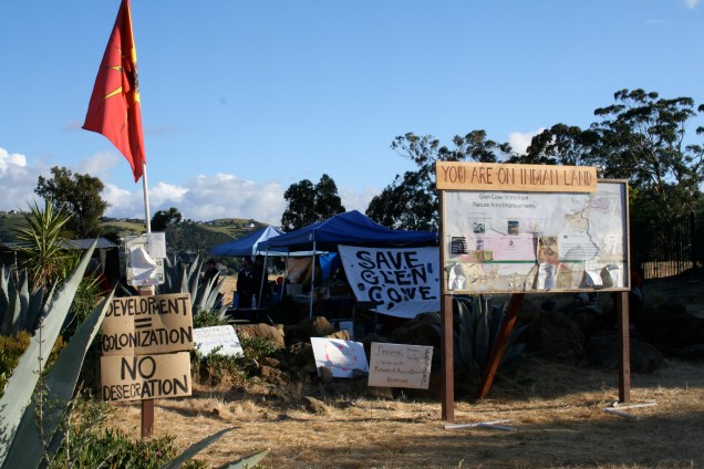 Soon I’ll have more to say about the Glen Cove sacred site defense (East Bay Solidarity is getting involved, as a group, in solidarity work), and more photos to share. But for now, I just want to thank bfp for giving voice to ways that free movement for colonizers depends on the restriction and coercion of movement for the colonized. And, in this case, their buried ancestors.