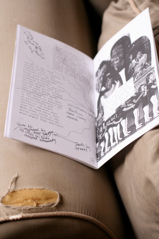 I’m not really sure why it took me so long to get into zines. Even now I’m not particularly ‘into’ them, to tell the truth — which is strange, considering that I love handmade objects, and I obviously love informal self-publishing. True zine-ophiles (ha! xenophiles!) might cringe at overly broad definitions of the form, but to a layperson like me, the essence of zines seems to be (a) self-manufacture and (b) text and images. Why wouldn’t a blog count? (Unless, of course, you’re a stickler about the handmade-object thing, which, really, I wouldn’t blame you, because as I said, I have a crush on handmade objects.)