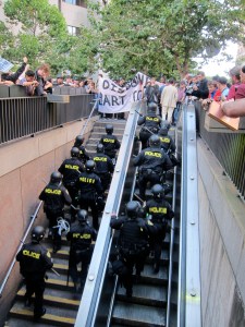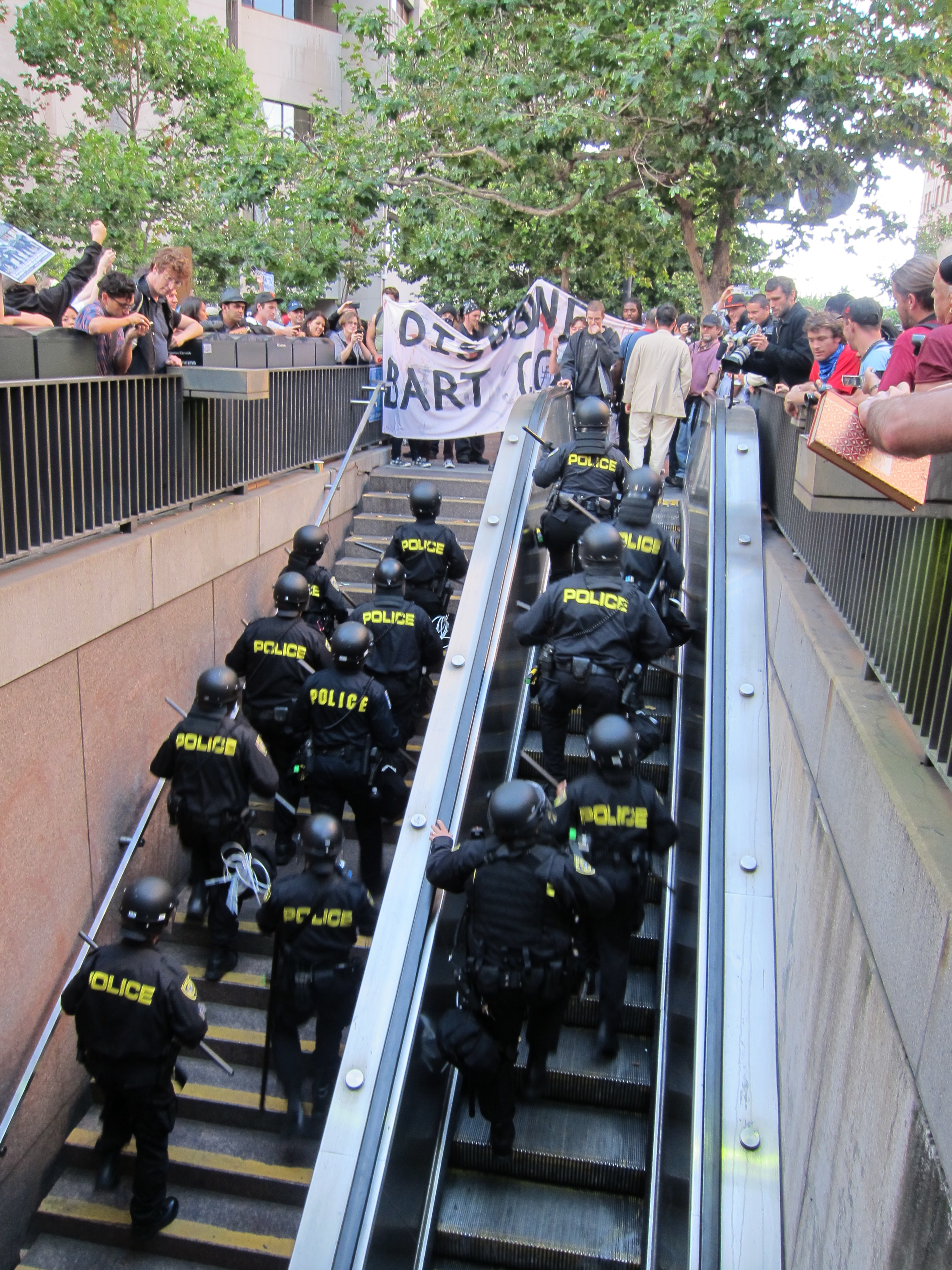 Political militants often draw similar criticisms. Yesterday at the BART protest spearheaded by “hacktivist” group Anonymous, a couple hundred people took to the streets, impatient with BART police for one reason or another. (Some said “Free Speech;” some said “Disarm BART;” some said “Cops, Pigs, Murderers.”) While anti-police demos resonate with oppressed groups in many corners of the globe, they also inevitably draw criticisms about inappropriate behavior (not acquiring permits through the proper channels, chanting angry and unsavory messages, looting, burning, etc.) and inconveniencing others (in this case, commuters). In a word, protesters are painted as unwilling to restrain themselves.