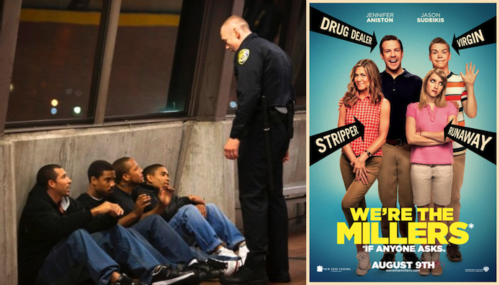 Meet the Millers is, according to the trailer, a zany comedy about a white dude sent on a mission to Mexico to smuggle in a ridiculous amount of weed. Knowing he’ll be more conspicuous at the border if he’s alone, he assembles a team of white working-class ne’er-do-wells to act as his hetero nuclear clan, faking wholesomeness (synonymous with whiteness) to deflect any law-enforcement suspicion.