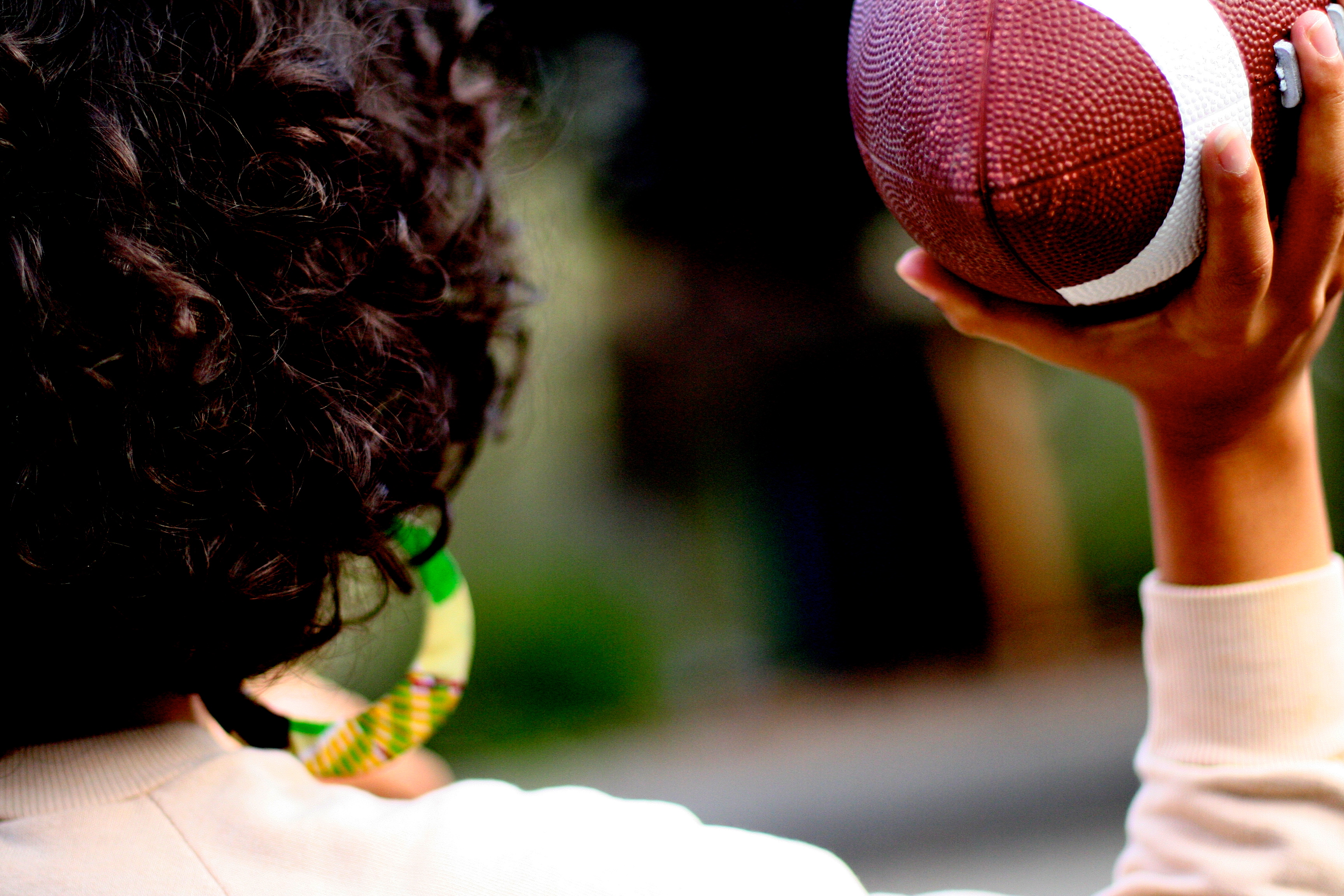 For months now, I’ve been wanting to teach the neighbor-girls across the street how to throw a football, like my dad taught me. They’re always hanging out on the porch inventing games, waving to me out of boredom, friendliness and mischief as I walk to my car. I even got a junior-size ball so they could hold it easier, but the very same day I bought it, it wound up waylaid at a friend’s BBQ birthday party. (Hard to resist a game of catch, you know?) Finally recovered this week, the mini pigskin enjoyed its debut on the block.