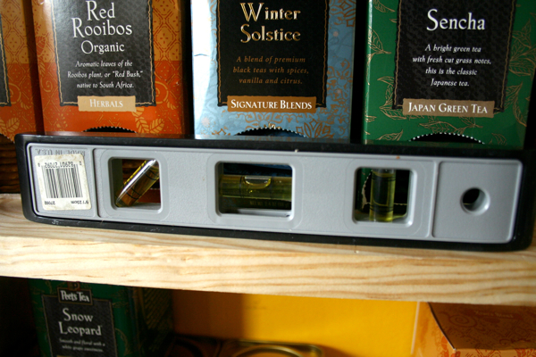 It's a little hard to see, but the bubble in the center indicates that the shelves are level. I was so proud that I just left the level on there for like three days, just gazing happily at it from time to time.______